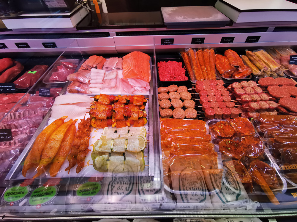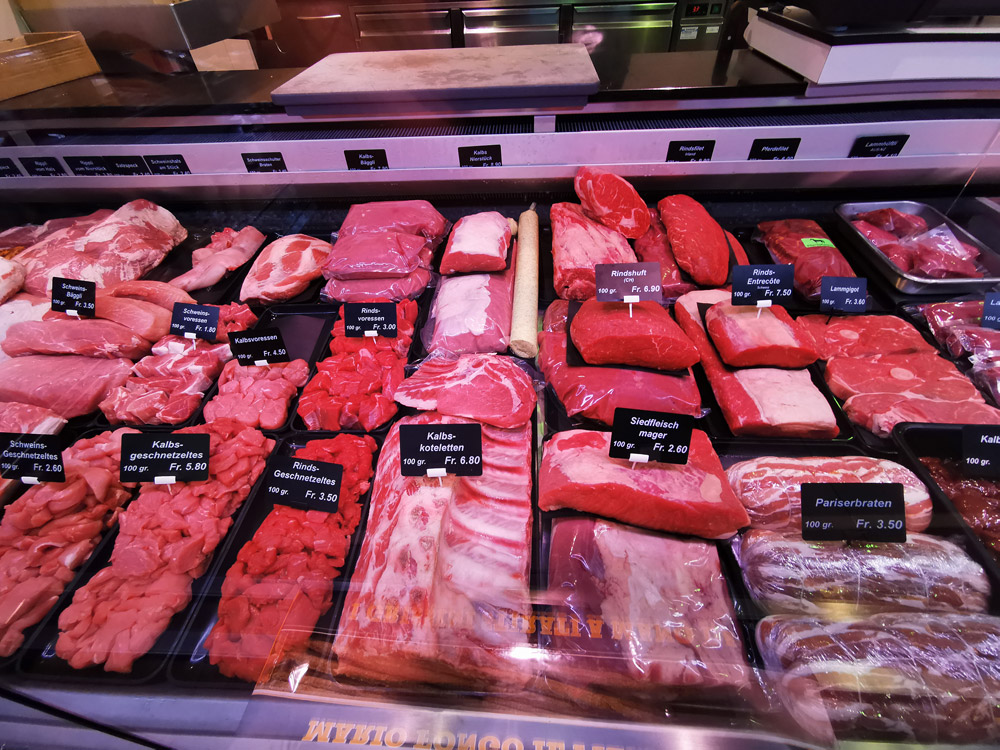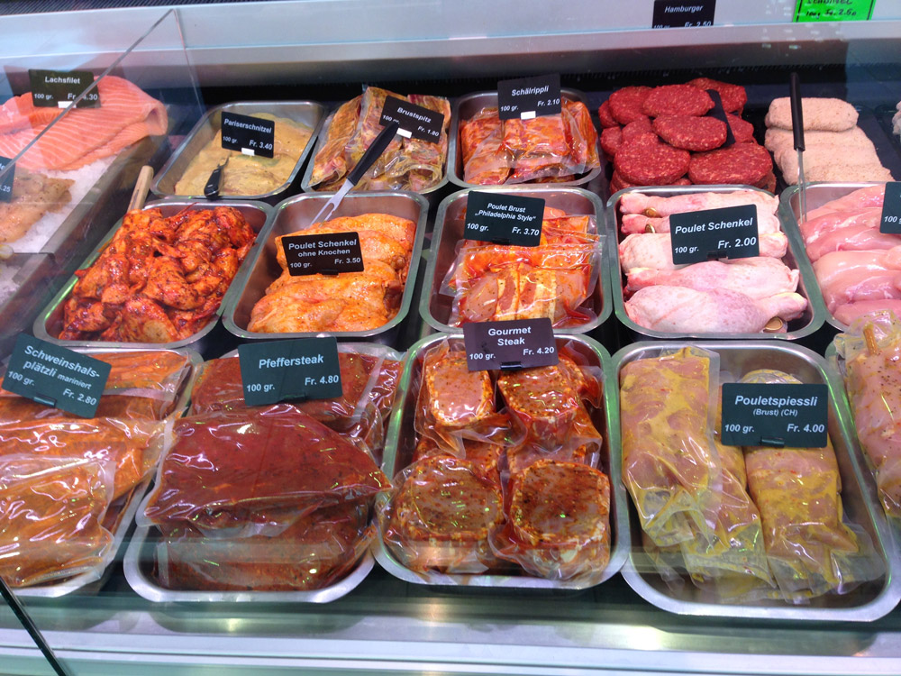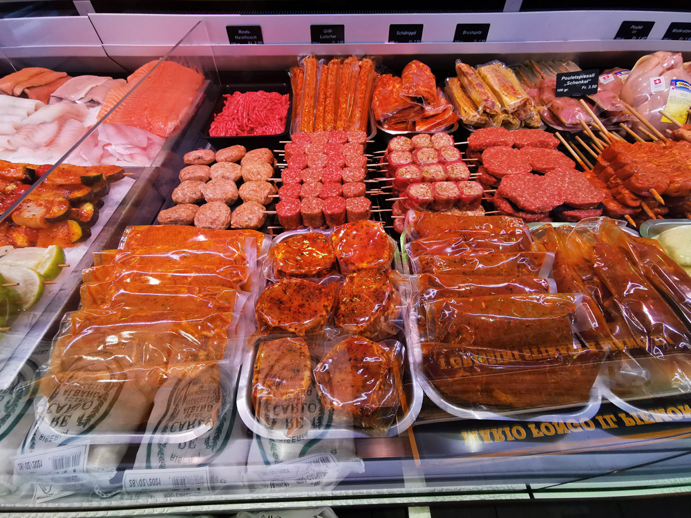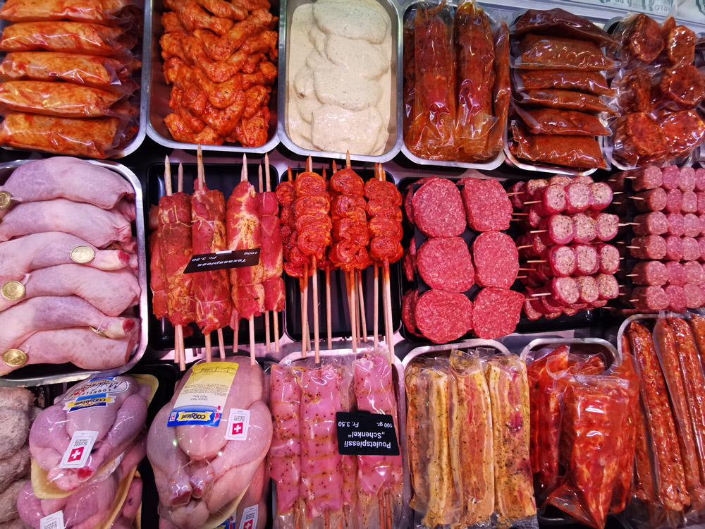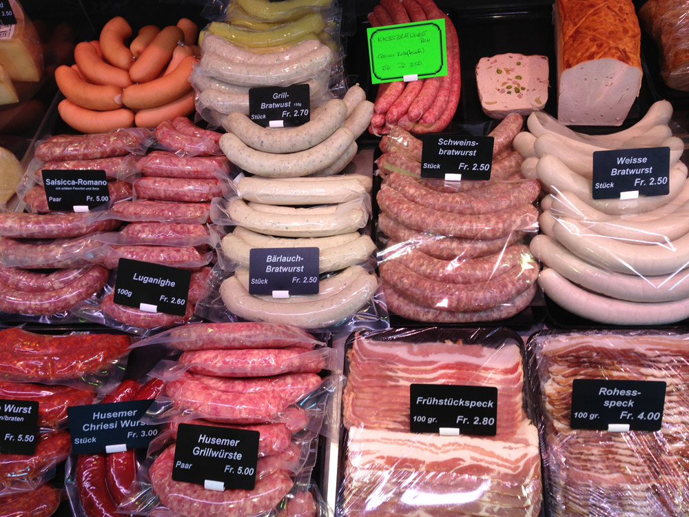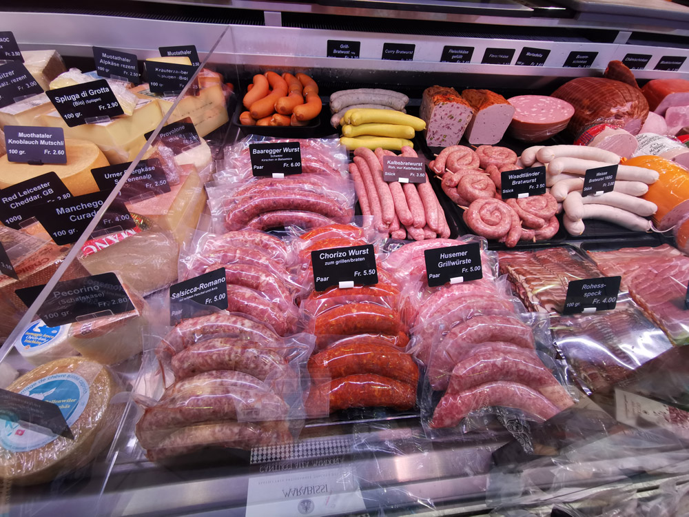 Vielleicht liegt es an unserem schönen, hellen Verkaufsladen, in welchem nebst Fleisch, Fisch, Käse und Wein auch ein breites Sortiment an hausgemachten Wurstwaren, Milchprodukten und diversen Comestible-Artikeln gekauft werden können.